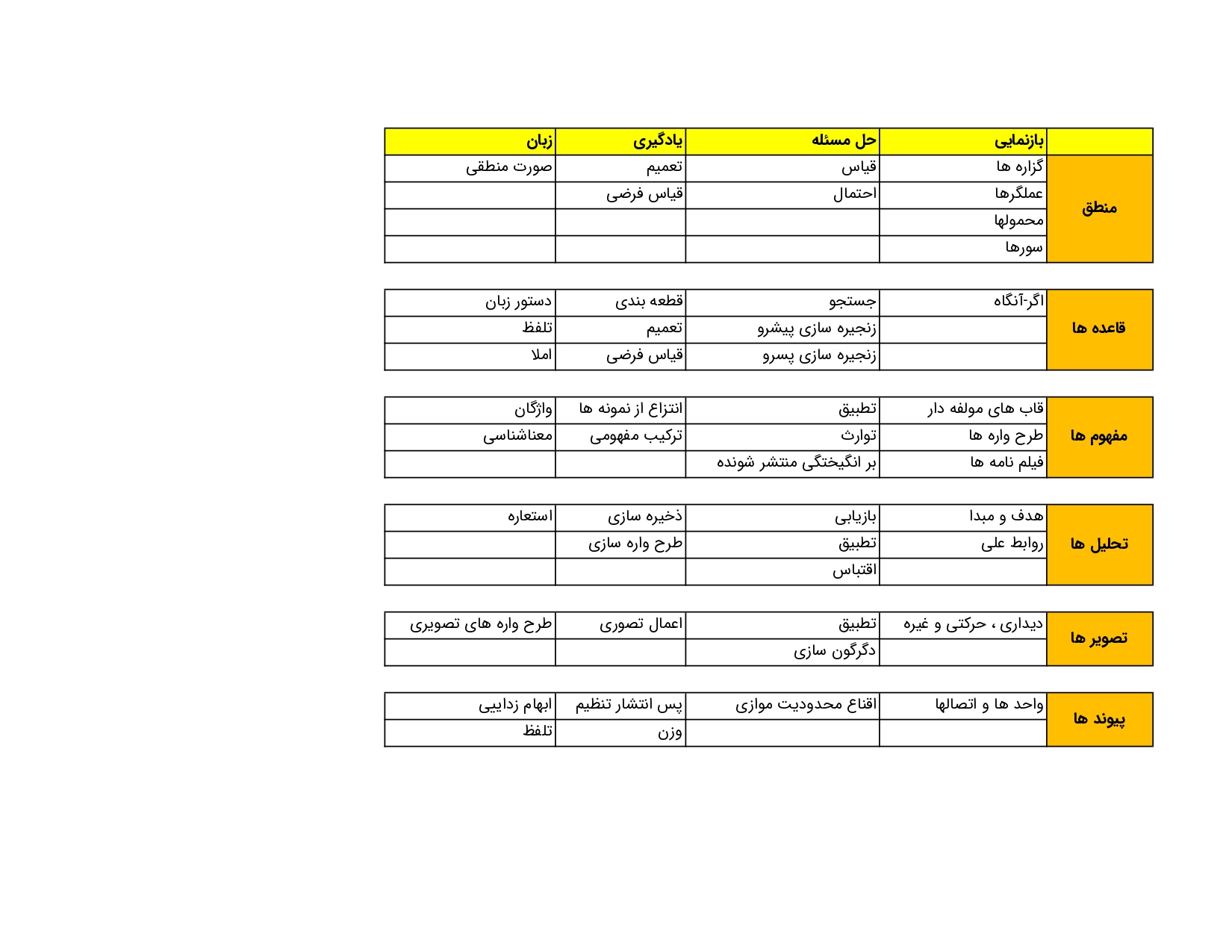 - موضوع: طرح تفکری دانسته ها و مفاهیم (قبل از طرح مطالعانی)